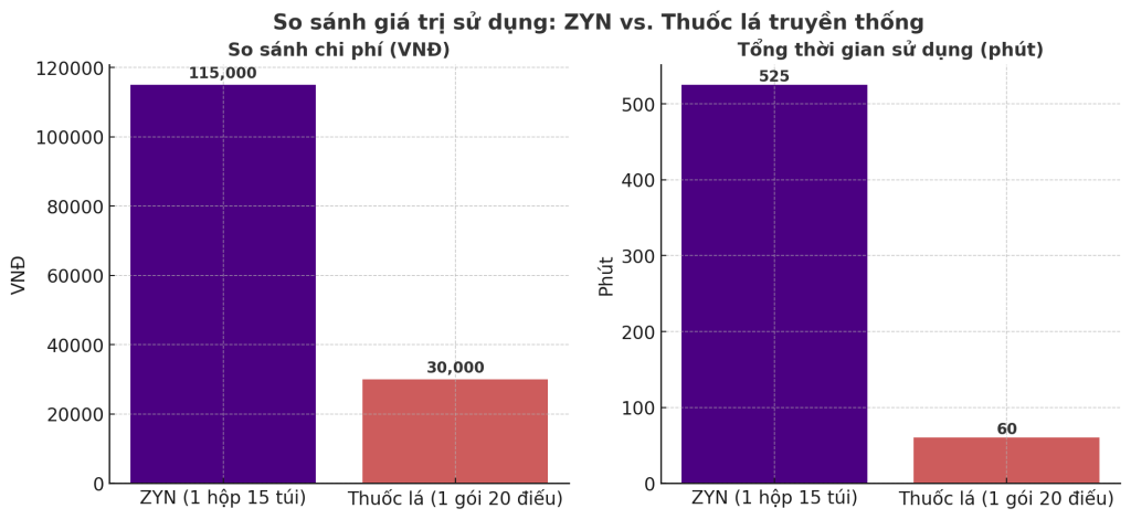 Rõ ràng, khi xét về “chi phí trên mỗi phút hưởng thụ” và khả năng kiểm soát liều lượng, ZYN tỏ ra là một lựa chọn kinh tế và hiệu quả hơn.